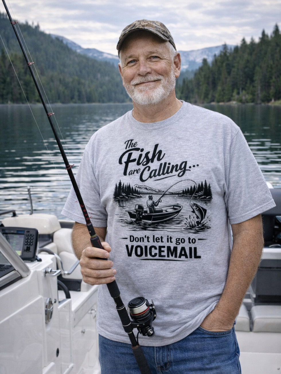 You hear it…The water, the quiet, that little tug you’ve been waiting for. This tee is for early mornings on the lake, long casts, and the stories that somehow get bigger every time you tell them. Whether you're out chasing the next big catch or just enjoying the peace and quiet, this one belongs on the boat with you.